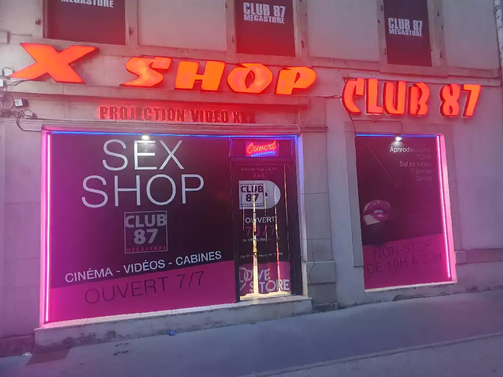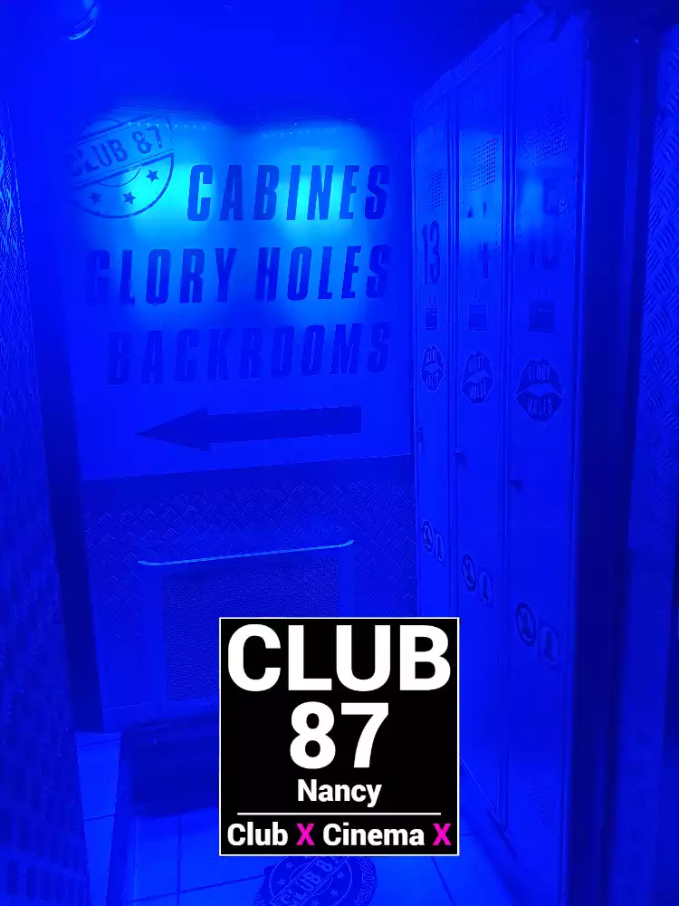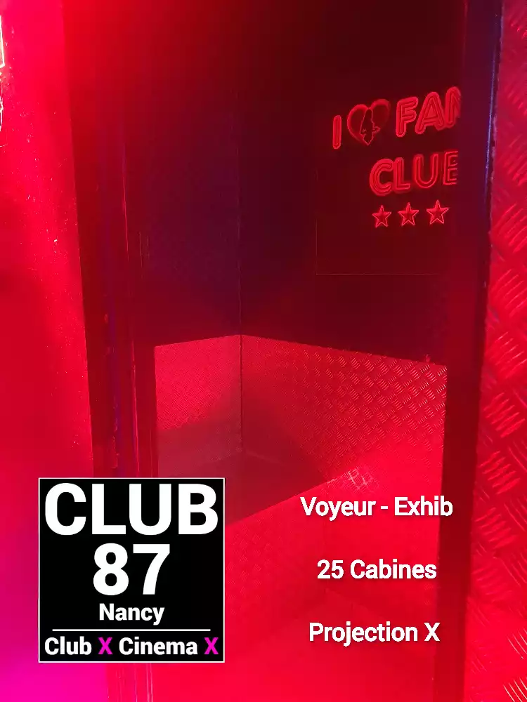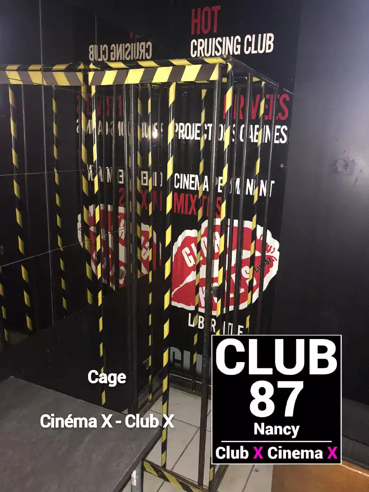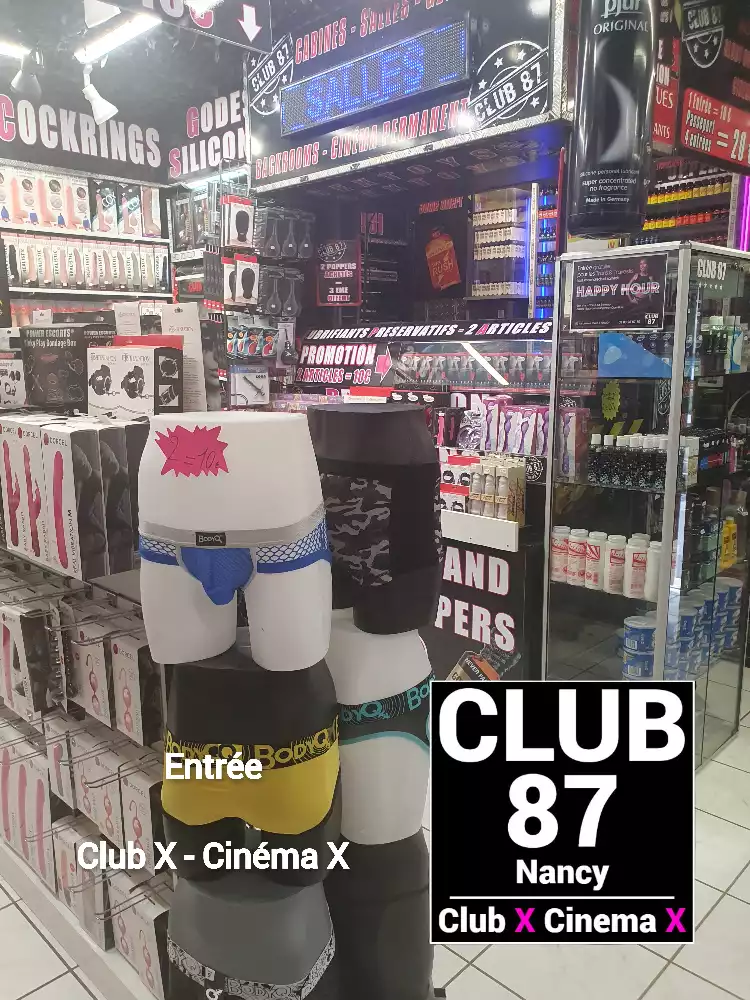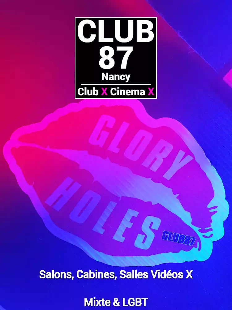 Le Club 87 Nancy - Club X - Cinema X libertin Un endroit, un club véritablement dédie aux partages des plaisirs, au cœur de Nancy Enfin un endroit où vous trouverez sans nul doute ce dont vous rêver À tous moments. Club 87 fait portes ouvertes A toutes vos ardeurs. Ouvert 7 jours sur 7, 10h à 20h non-stop. 400m2. Sur 3 niveaux - tout équiper, Cabines, Salles vidéo, Salons, Backroom, Labyrinthe, Croix St André, Glory Hole, Cage, Sling, Coins câlins. Totalement climatiser, machine boisson fraiche ou chaude. Casier avec cadenas, douche, coin fumeur. Mixte, couple, femme, homme seule, lgbt. Entrée 10 euros valable toute la journée.